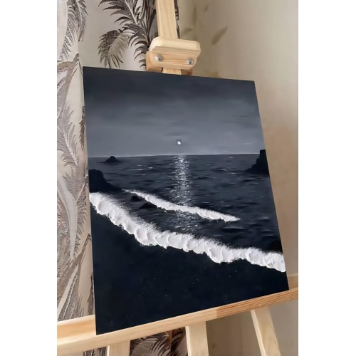 لوحة فنية لمنظر بحري ليلي